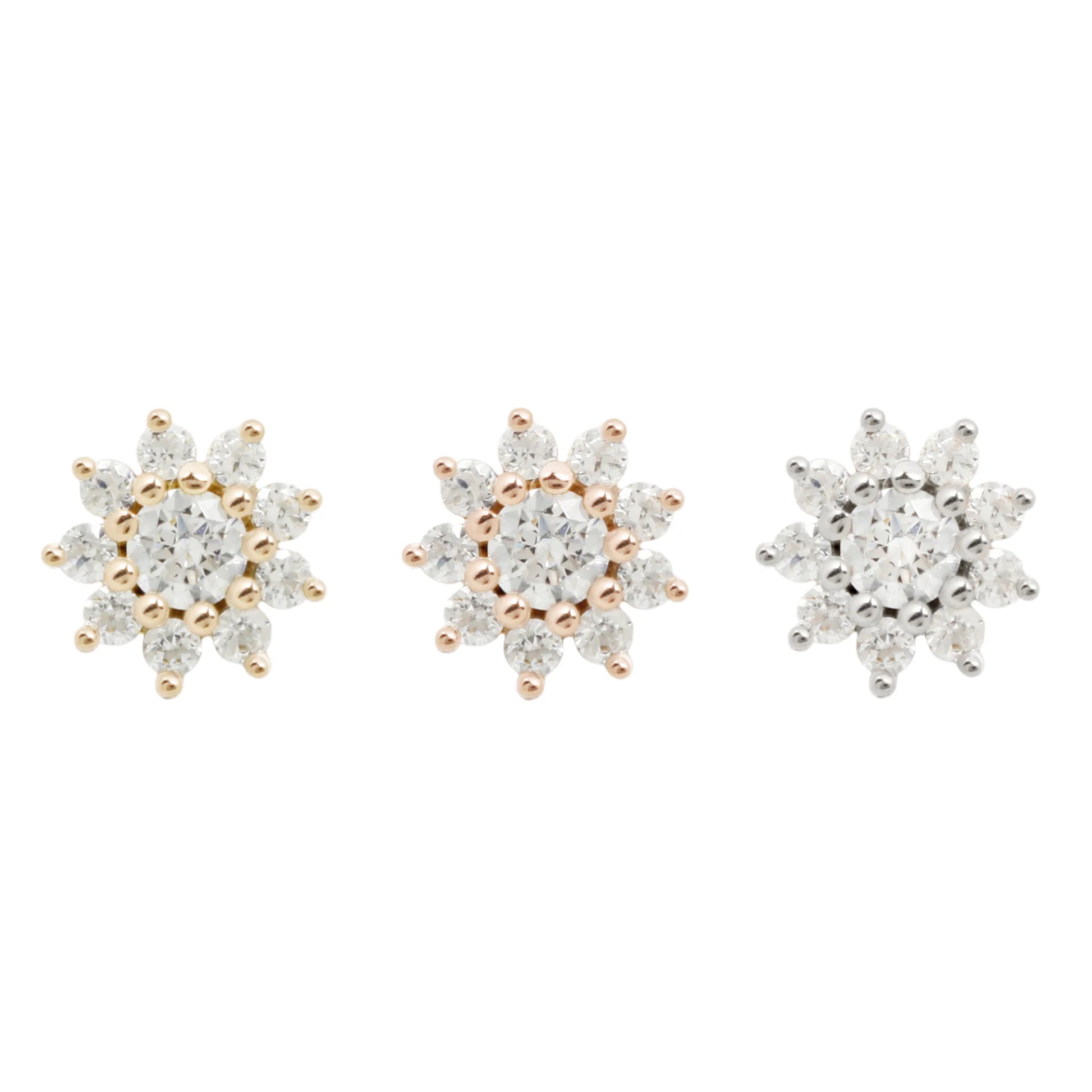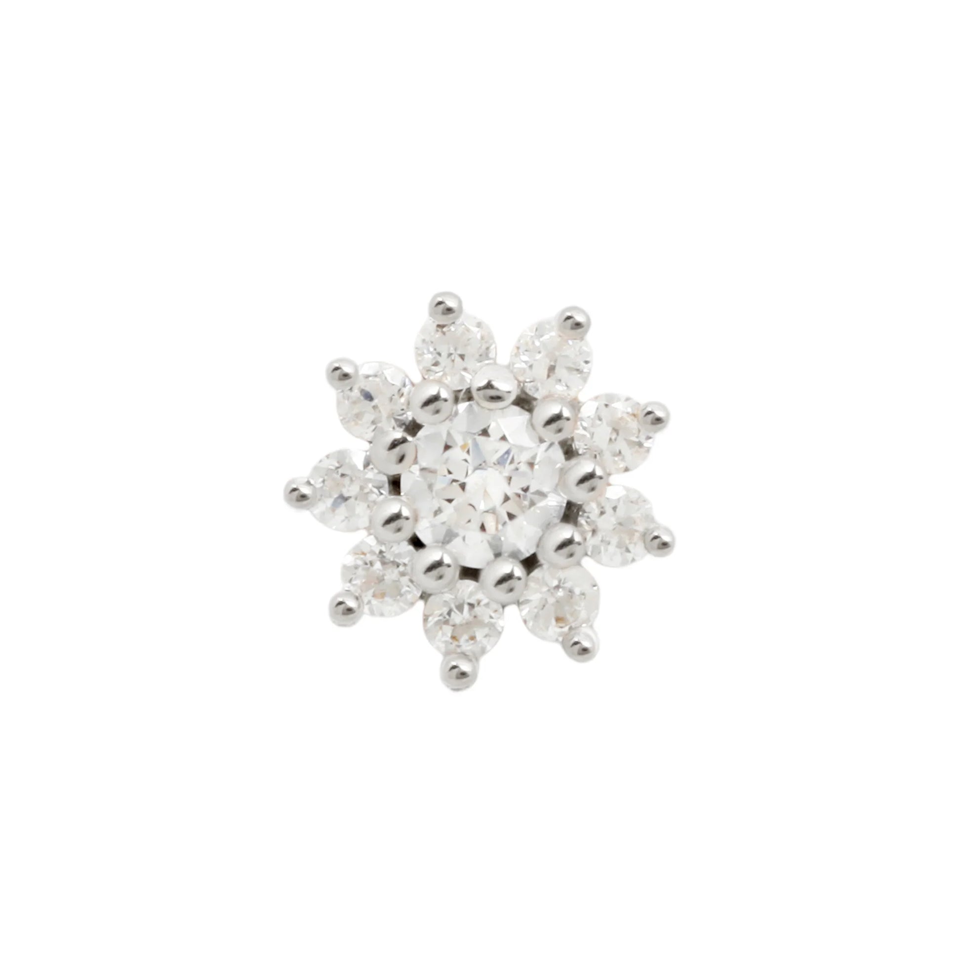 The Eloise flower packs a lot of shine + style in a small package! Low profile set Cz's makes this design perfect to wear in any piercing!