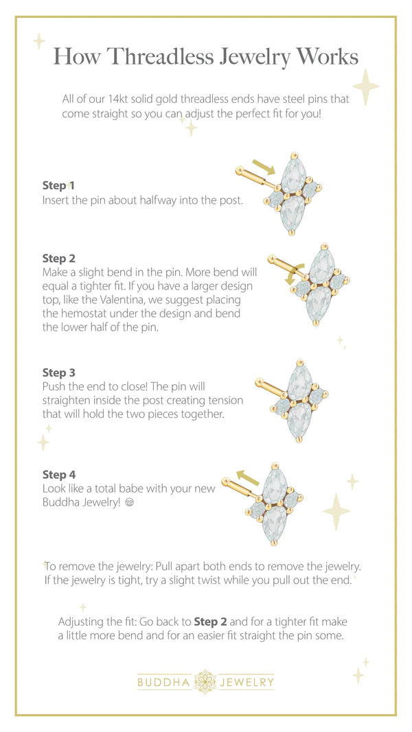 BUDDHA JEWELRY - ELOISE FLOWER - CZ - 14KT SOLID GOLD - THREADLESS END *