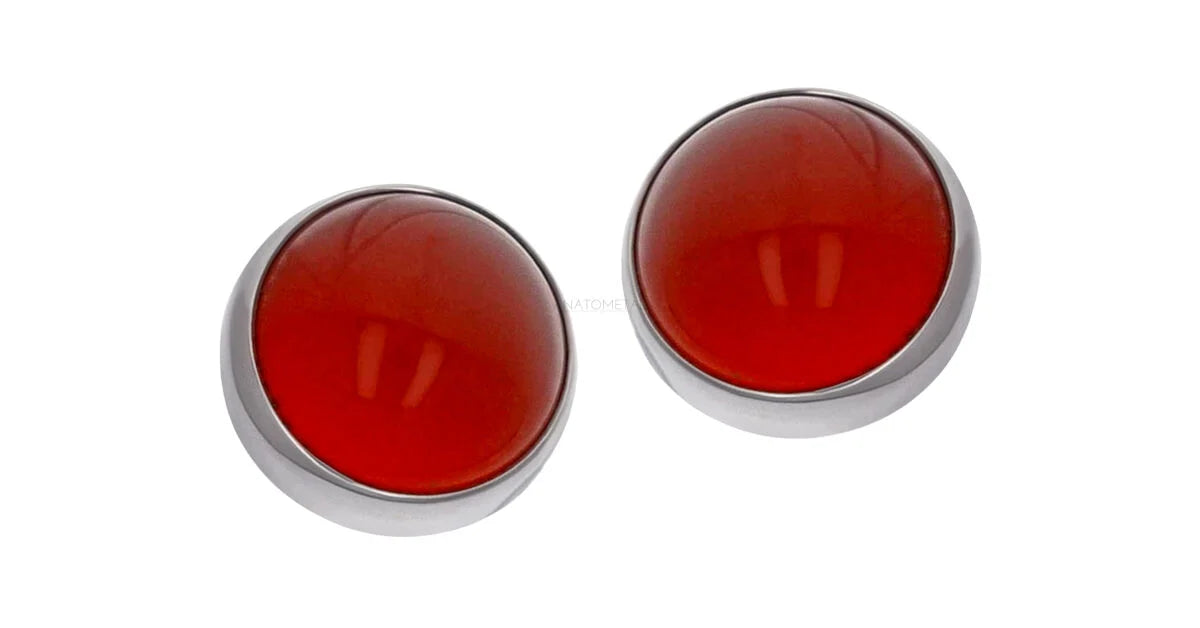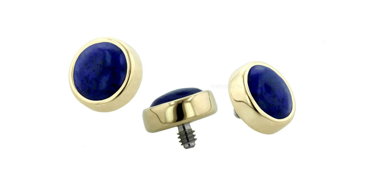 Anatometal Bezel-Set Gem Ends are machined out of a single solid piece of implant grade titanium or cast in solid 18 karat gold.