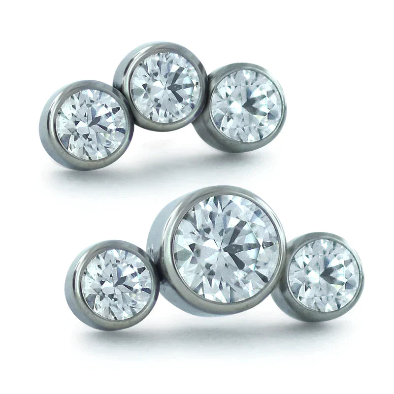 Our Petite gem clusters are the perfect size for a wide variety of piercings. Crafted from implant-certified titanium, these clusters are available with either 1.5mm gems or 1.5mm and 2.5mm gems.