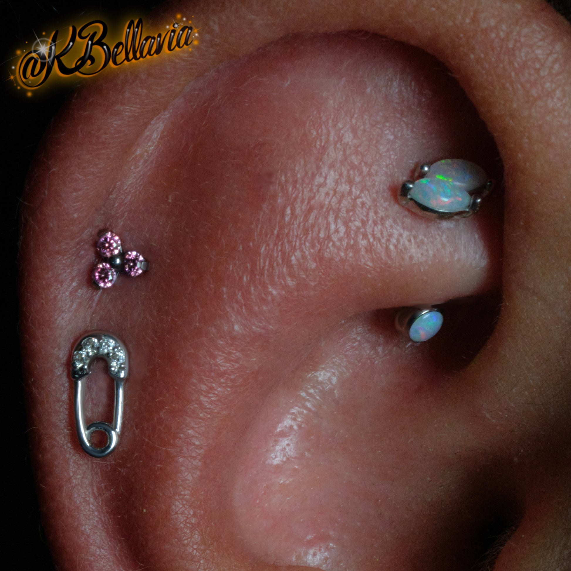 Handcrafted Solid 14k Yellow, Rose and White Gold with stainless steel threadless end compatible with 16g and 18g post/backing. 18k solid threads available for 18g, 16g and 14g threaded posts/backings upon request