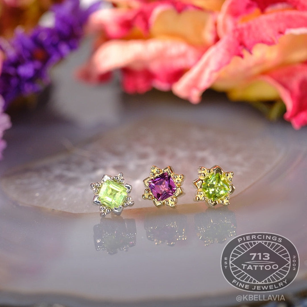 Size: 3mm center princess-cut gemstone | Charm size = 5.40mm
