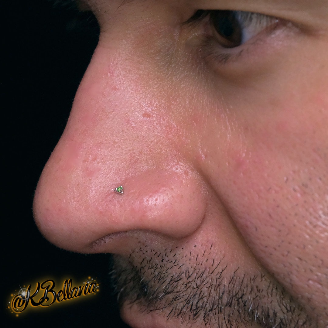 "Illuminati" single colored faceted gemstone set on a triangle platform threadless end.