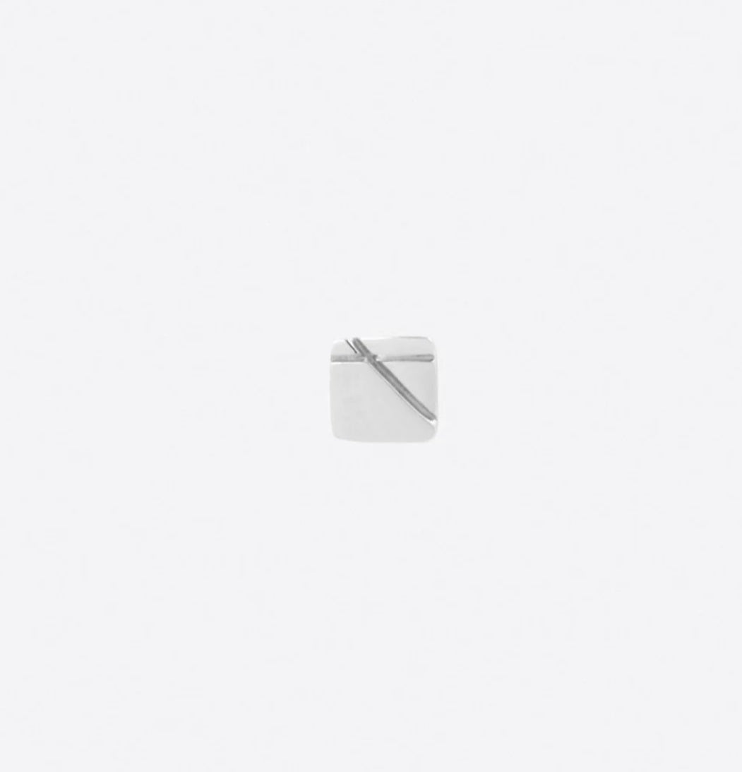 Part of our new elemental collection, this subtle, flat square is cast in solid 14k gold. It features 2 linear accents and would look great in a myriad of piercings.